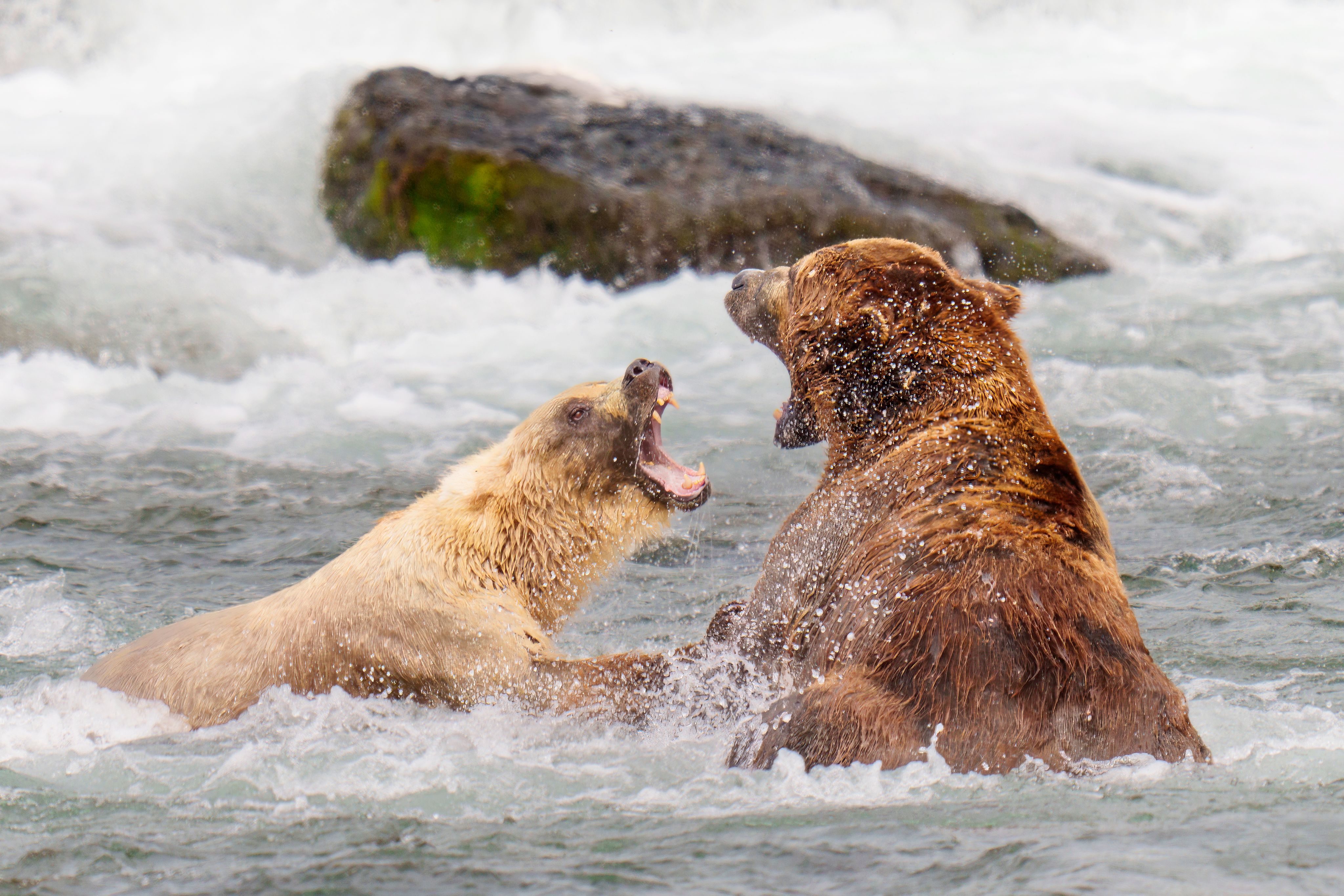 I often remark that one of the best parts of my job as a wildlife photographer is that I have the privilege of watching wildlife documentaries unfold before my eyes in real-time, missing only the voice of David Attenborough narrating the scenes. At this moment, watching the flailing cub tumble toward one of the most legendary boars in Katmai National Park, I want that soothing voice in my ear more than I ever have before—something to calm the feelings I know will soon come.